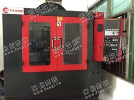 出售一台二手*力劲TT-510p双工作台钻攻机(没用过的),系统:发那克OiMD系统,行程:X510×400×310mm,二个工作台:600×230mm,主轴转速:10000转,主轴头BT40 。主轴马达11kw,,三轴线轨,*库16把,现新机二手价超值,工作正常,加工精度优。高速高精度。